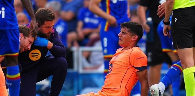 报道称,赫塔费的草坪给巴萨带来了意外状况。上半场临近结束时,赫拉德-马丁的球鞋卡在球场地面的坑洼中,导致他意外绊倒摔倒。这名球员重重倒地,表现出强烈的痛感。