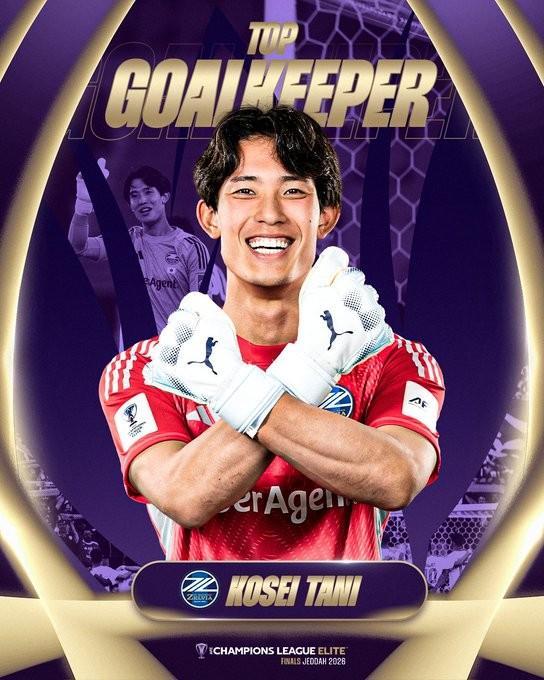 官方:町田泽维亚门将谷晃生当选本赛季亚冠精英联赛最佳门将