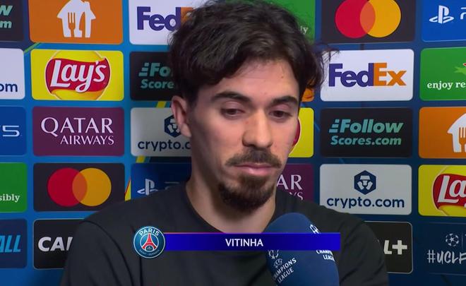 在主场5-4战胜拜仁的比赛后,巴黎中场维蒂尼亚在接受欧冠赛事官方的采访。